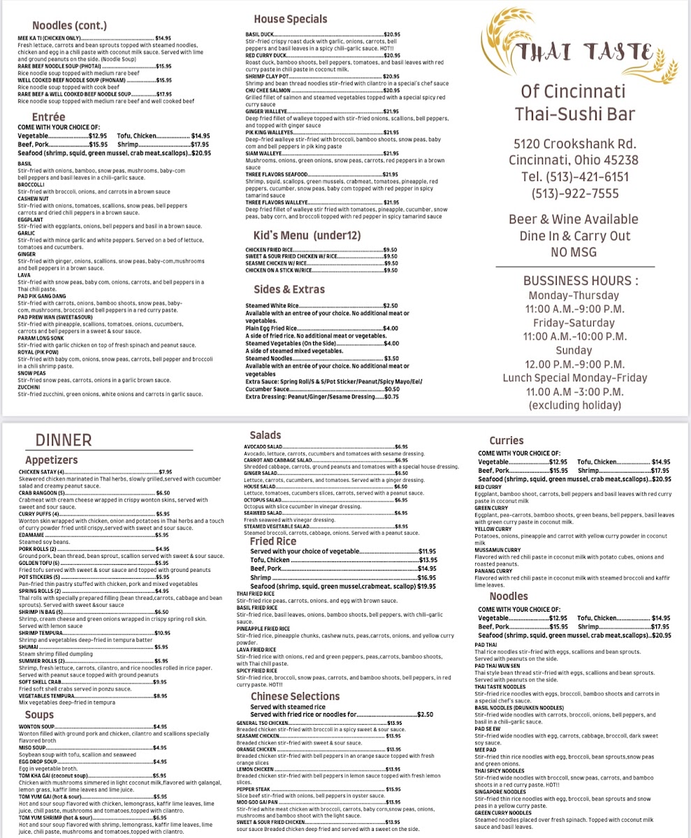 The menu at Thai Taste presents a balanced collection of classic Thai dishes tailored for a casual yet thoughtful dining experience. Whether you’re stopping by for a relaxed lunch or an easy dinner, the offerings invite you to explore fresh flavors and comforting preparations without fuss.